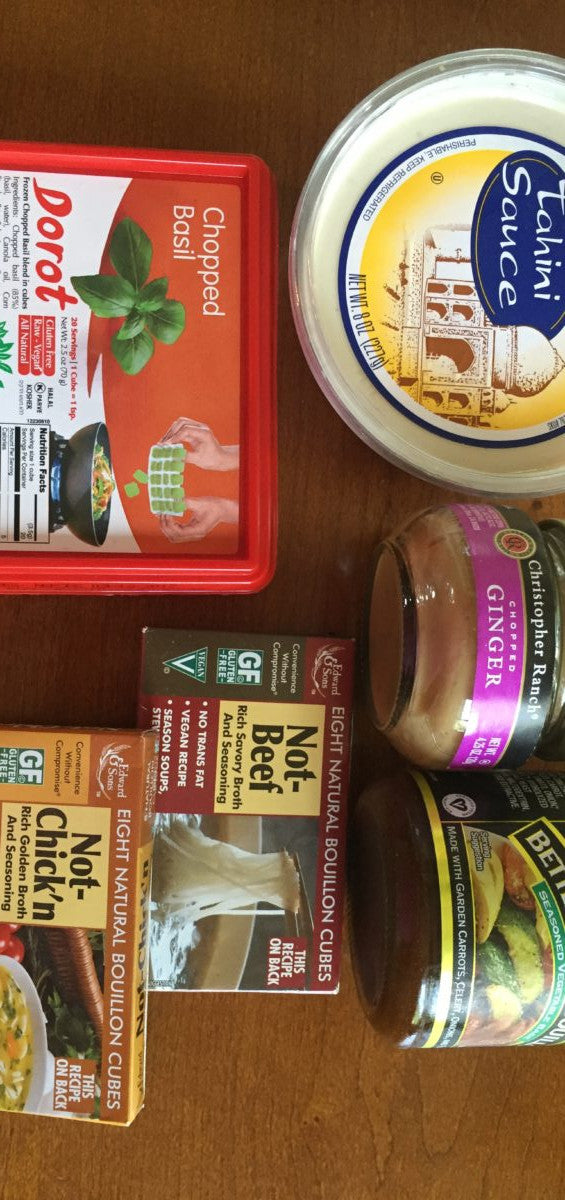 - Dorot frozen spices (garlic, basil and cilantro) – You can find this product in the freezer section of many grocery stores. It consists of pureed herbs frozen in small cubes that are easy to pop out and use in recipes. The garlic is a real time saver because each cube is equivalent to 1 clove of garlic minus the peeling and chopping.